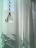 写真は窓辺のサンキャッチャー。光があたるととても綺麗です。
